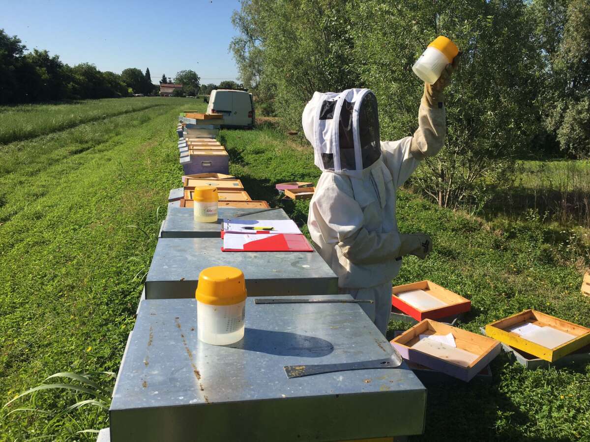 • Prelievo di circa 300 api (100ml) da 8-10 alveari per apiario, scelti casualmente
